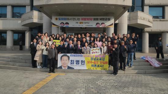 ÃÖº´Çå Àü ±¹ÀåÀº ¡°Áö½ÄÀ» ½×±â À§ÇÑ ±³À°À» ³Ñ¾î Áö¼ºÀ» ¹è¿ì°í »îÀÇ °¡Ä¡¸¦ ±ú¿ìÃİ¡´Â ±³À°À¸·Î ³ª¾Æ°¡´Â ÇÑÆí, âÁ¶±³À°À» ¼±µµÇϱâ À§ÇØ °æ³²±³À°°¨ ¼±°Å¿¡ Ã⸶ÇÑ´Ù¡±¸ç 5´ë ÇÙ½É °ø¾àÀ» ¹àÇû´Ù.
