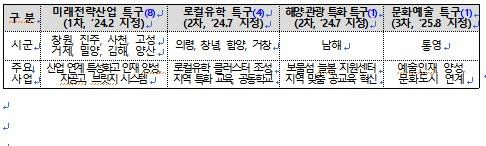 * Ư±¸ ÁöÁ¤ ÇöȲ : 14°³ ½Ã±º(1Â÷ 8°³ ½Ã±º, 2Â÷ 5°³ ±º, 3Â÷ Å뿵½Ã ÁöÁ¤)