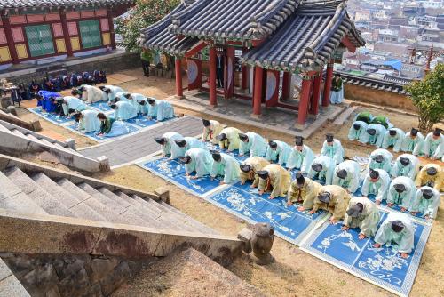 [½Åµ¿¾Æ¹æ¼Û °æ³²ÁøÁÖ=±è¸í¼ö±âÀÚ] ÁøÁÖÇâ±³´Â °øÀÚ Åº»ý 2577ÁÖ³âÀ» ¸Â¾Æ 24ÀÏ ¿ÀÀü 10½Ã ÁøÁÖÇâ±³ ´ë¼ºÀü¿¡¼ °øÀÚ¸¦ ºñ·ÔÇÑ À¯±³ ¼ºÇöµé¿¡°Ô Á¦ÇâÀ» ¿Ã¸®´Â ¡®Ãá±â ¼®Àü(õðÑ¢ à·îõ)¡¯À» ºÀÇàÇß´Ù.