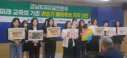 °æ³²±³À°ÀÇ »õ·Î¿î º¯È¸¦ ¿°¿øÇÏ´Â ÁöÁö ¼±¾ðÀÌ À̾îÁö°í ÀÖ´Ù. °æ³²ESG½Çõº»ºÎ´Â ¿À´Ã °ø½Ä ±âÀÚȸ°ßÀ» ¿°í °æ³²±³À°°¨ ¼±°Å¿¡ Ã⸶ÇÑ ±Ç¼ø±â ¿¹ºñÈĺ¸¿¡ ´ëÇÑ ÁöÁö¸¦ ¼±¾ðÇß´Ù.